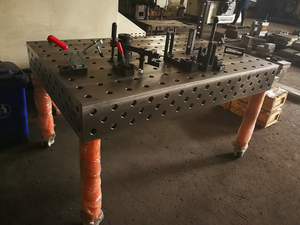 三維柔性焊接工裝平臺(tái)代表三個(gè)方向一般夾具都是縱向和橫向沒(méi)有垂直方向。平臺(tái)大面有二個(gè)方向,四周邊可用作垂直方向的安裝,從而達(dá)到立體組合。